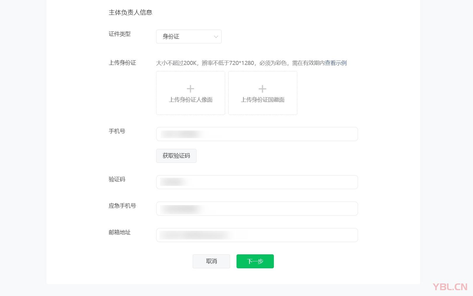 2、主體負責人信息填寫
